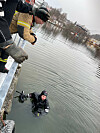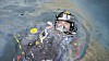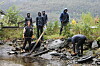 Dykkarar på plass: Utsleppet har danna eit grått slamlag på elvebotnen